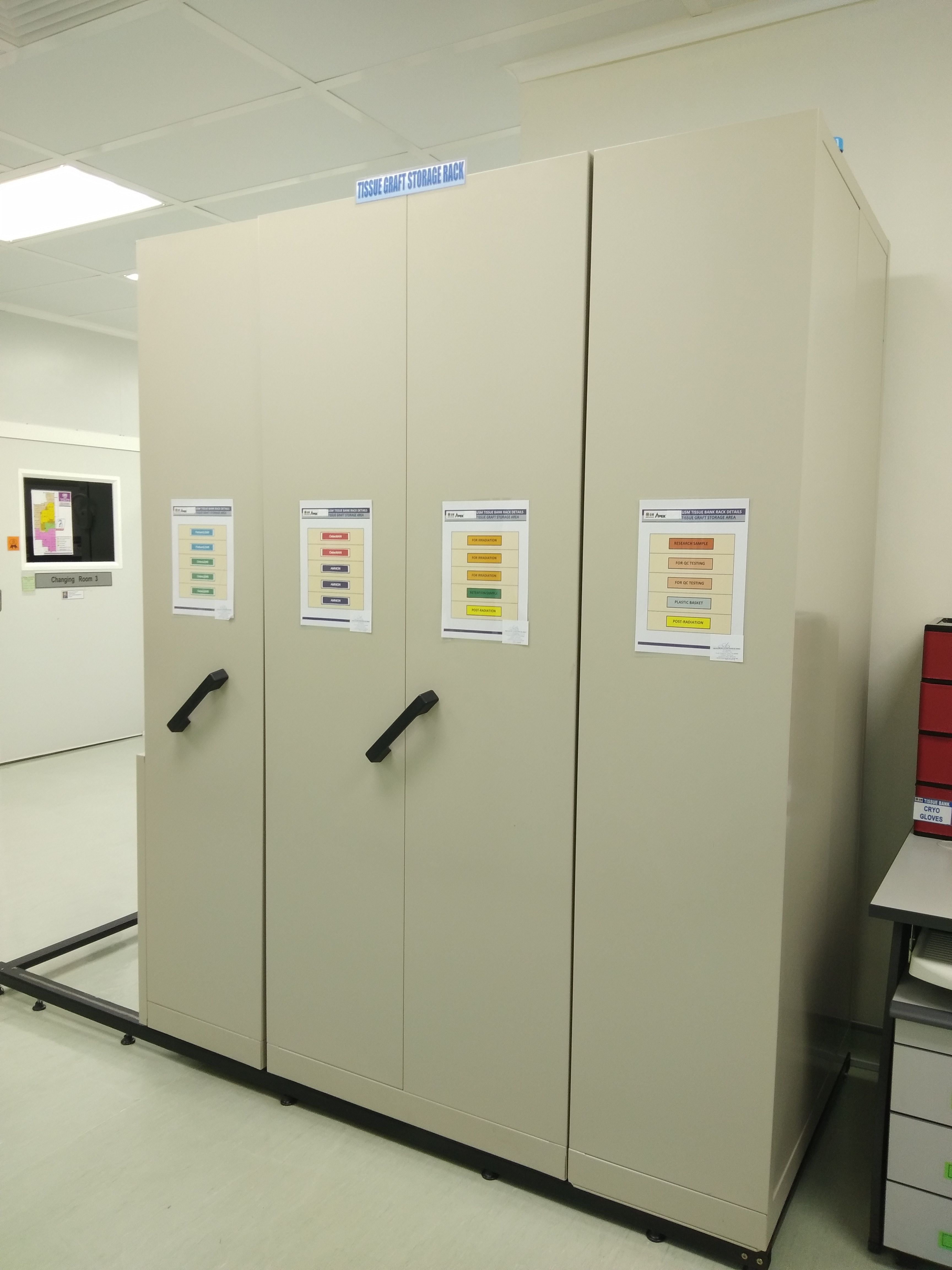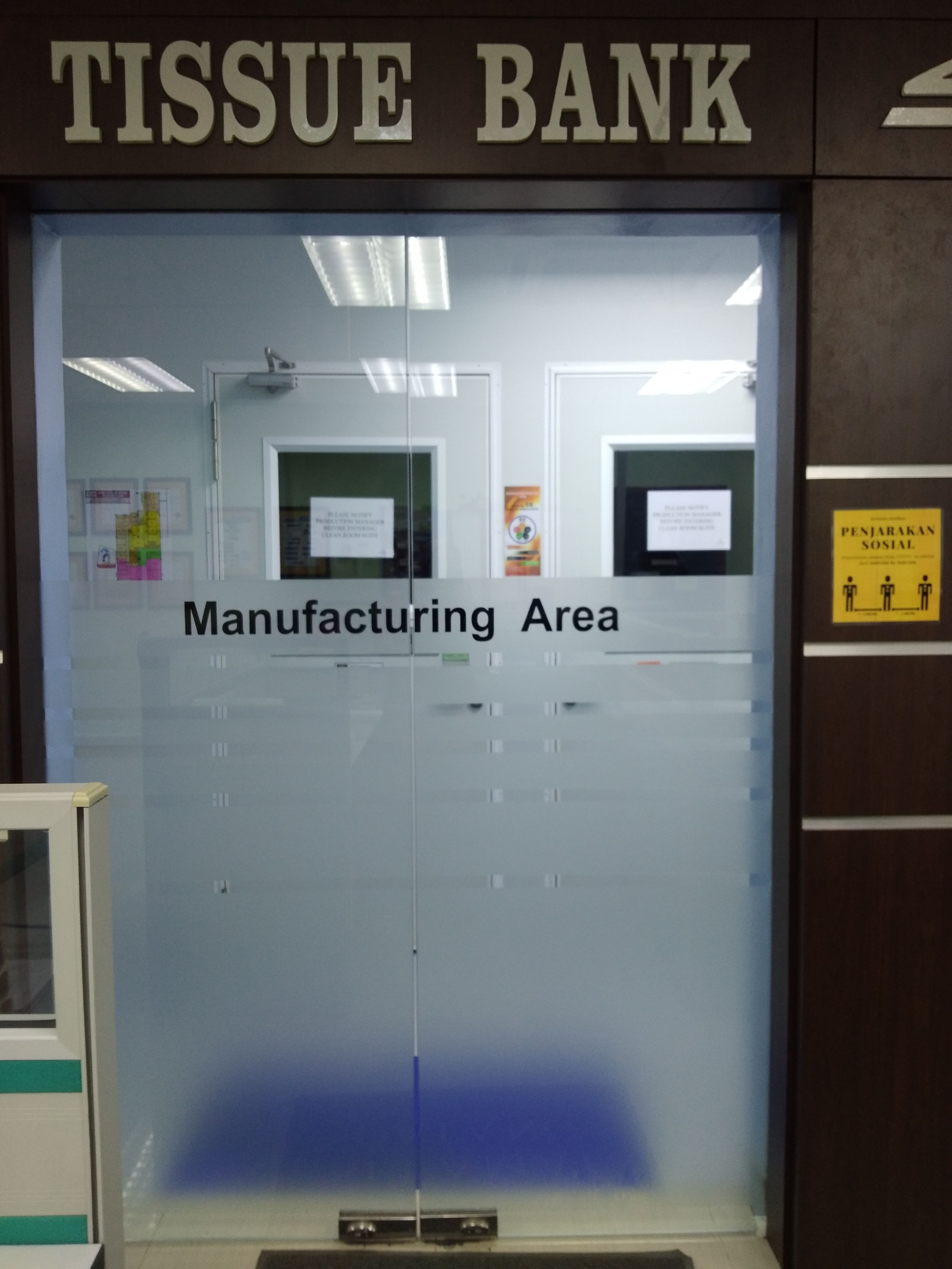 At USM Tissue Bank the processing and packaging of tissue grafts are performed in a clean room environment. This is one of the measures taken to reduce contamination of the tissue grafts in order to satisfy the requirements of ISO and customers. The professional care and maintenance of clean room guarantee the long-term sustainability of this operation.