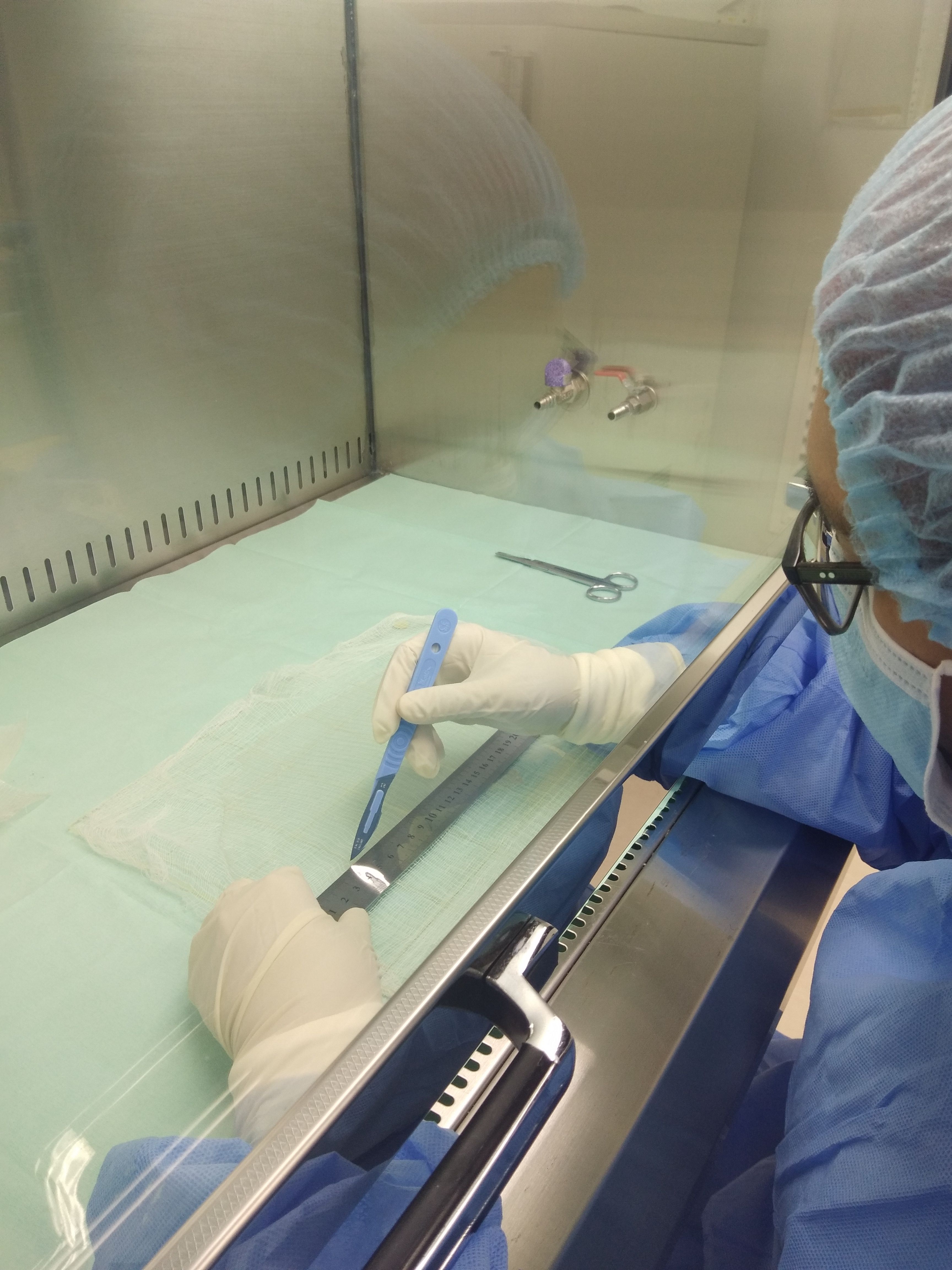 Amnion - cutting in fume hood.